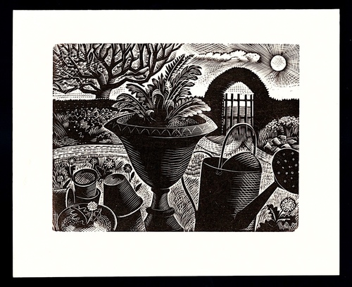 Christmas card, folded card, 123 x 152 mm. One of an edition limited to 180 for Press use and 25 for Adrienne Craddock, the artist's daughter, printed letterpress in hand-set Arrighi on cream Mohawk card folded once, with a wood engraving by Kenneth Craddock.
