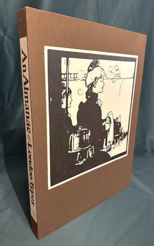 Set number '70' of an edition limited to 150 sets. Printed from the original woodblocks on a Columbian hand-press by John and Rosalind Randle and Miriam Macgregor, with the help of Jane Lyons and Simon Lawrence. The paper is Camber Sand hand-made from Hayle Mill. The set of sheets comprises of thirteen sheets (including a title sheet) being 'An Almanac of twelve Sports'; thirteen sheets (including a title sheet) being 'London Types' each showing a type of character to be seen on the streets of London; six sheets of 'Unused Versions'. Each sheet is 400 x 290mm and has a loosely inserted tissue guard. Each group of sheets is separated by an orange card with the printed title of the group. TOGETHER WITH copy number '70' of an edition of 225 copies of a booklet entitled 'William Nicholson's | An Almanac of twelve Sports | and London Types | An introduction to the reprint | from the original woodblocks' by Edward Craig, hand-set in Caslon trype and signed by the author on the colophon; printed, orange card covers; Quarto, 320 x 255 mm, pp. 16. All housed in a brown cloth covered board box with a cream cloth interior and with woodblock prints to the upper lid board and to the spine and a paper label on the inside of the box lid.