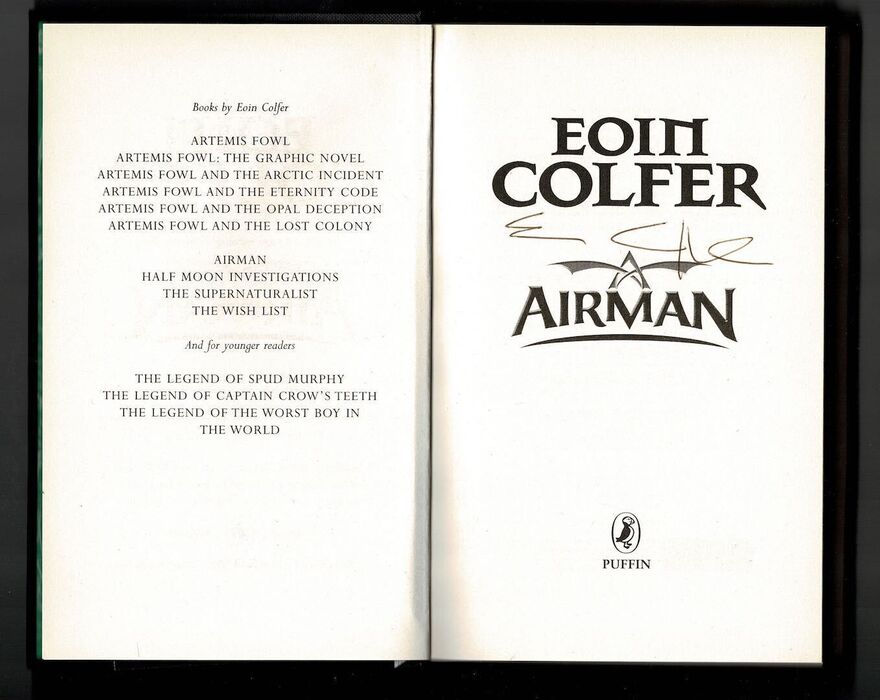 First Edition, first impression, with printing sequence line showing '1' only. SIGNED by author on the title page. Publisher's black boards with gilt lettering to spine, and illustrated endpapers. Clear, removable, archival protective sleeve fitted to dust-jacket. Octavo. pp. [8], 424. Complete with a promotional card for 'The Time Paradox' and a ten page booklet containing 'Exclusive Sneak Preview' of 'Airman'.