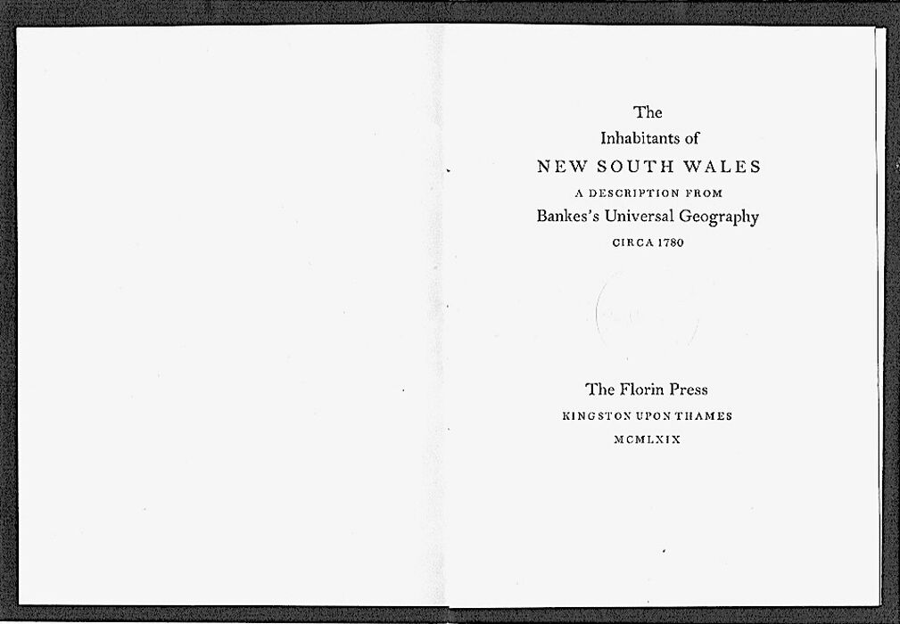 Title The Inhabitants of New South Wales. A Description from Bankes's Universal Georgraphy, circa 1780.