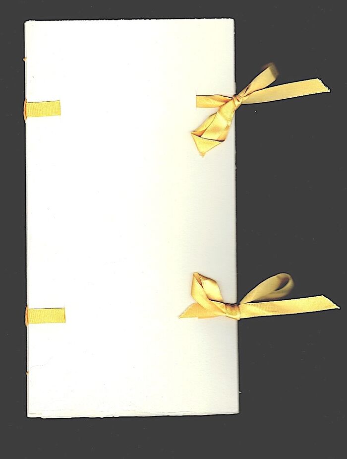 Copy number '20' of an edition of 100 copies (stated on the colophon to be 'less than 150 numbered copies' but SIGNED by the author as 20/100). Printed on dampened, hand made Khadi paper from India using type designed by E R Weiss. Yellow silk ribbon binding of card wrappers with orange endpapers, card chemise with printed paper label. 11½" x 6", pp. [20] with linocut illustration by Bert Eastman.