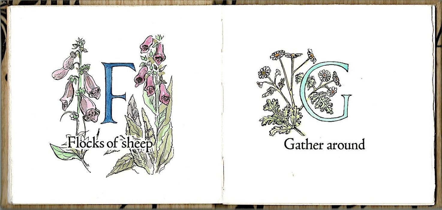 Copy number '28' of an edition limited to 150 copies, signed by Mary and Nicholas Parry and printed on Lana paper using Eusebious type. Cloth covered boards illustrated with medieval caligraphy, yellow endpapers. 12mo., 160 x 155, pp. [36] with hand-coloured drawings of flowers for each letter of the alphabet by Mary Parry.