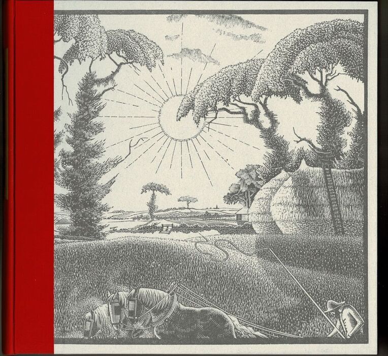 One of 375 copies bound in red quarter cloth and printed paper sides, from a total edition of 425 copies. Including one tipped-in wood engraving printed from the original block. With a protective cloth-covered slipcase by Chris Shaw, bookbinder. Printed lettering to paper label on spine. Page size 286 x 300 mm, with 180 illustrations.