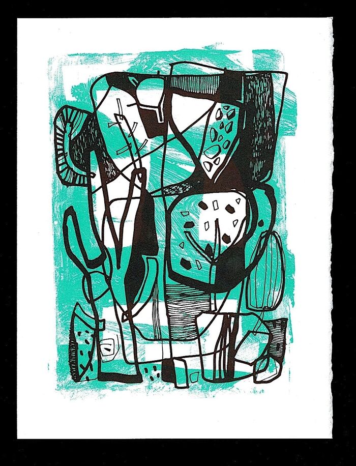 A prospectus promoting the publication of 'Duncan Glen: Poet, typographer, publisher & educator' in an edition limited to 38 signed and numbered copies. The prospectus contains one of Glen's poems 'The Gairden' and coloured screen print by AB is loosely laid in. 330 x 250 mm, pp. [4] plus the screen print. The screen print is 320 x 240 mm.