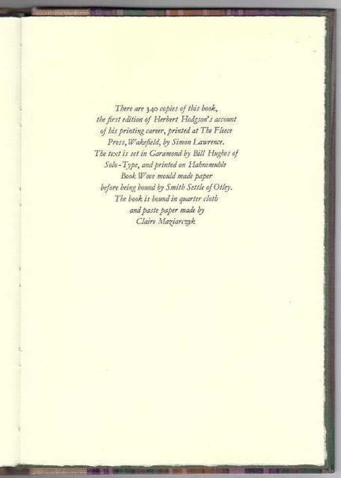 Title Herbert Hodgson Printer. Work For T.E. Lawrence and at Gregynog