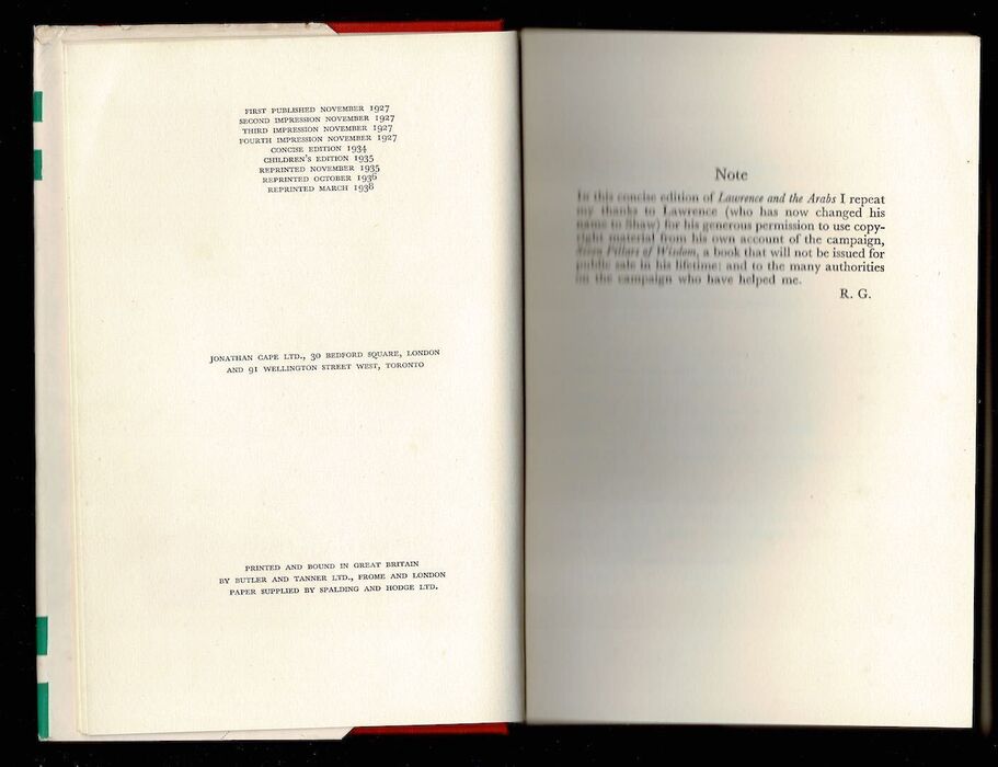 The Second English Edition, called the 'Children's Edition', March 1938 reprinting, and so identified in the issue statement on page 4 (see image 2). Publisher's red cloth with black lettering to the front cover and spine, and a black publisher's device to the rear cover. Clear, removable, archival sleeve fitted to the illustrated dust-jacket. Octavo. 19.9 x 13.5 cm: [A]8, B-S8, 114 leaves, pp. [1-6] 7-8 [9-10] 11-288, with 16 plates on coated paper printed on one side only following pp. 2, 28, 36, 80, 92, 122, 134, 170, 186, 206, 228, 236, 242, 250, 278, and 284. Sheets bulk 3 cm. Text 20 lines 7.8 x 8.8. The spine of the dust-jacket includes the words 'for boys and girls' in addition to the title and author.